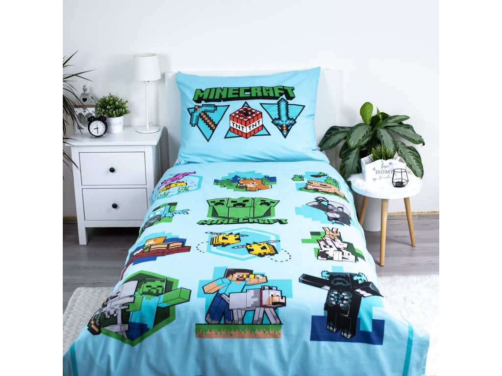 Dodejte své posteli styl a pohodlí s tímto originálním povlečením, které potěší každého fanouška Minecraftu!