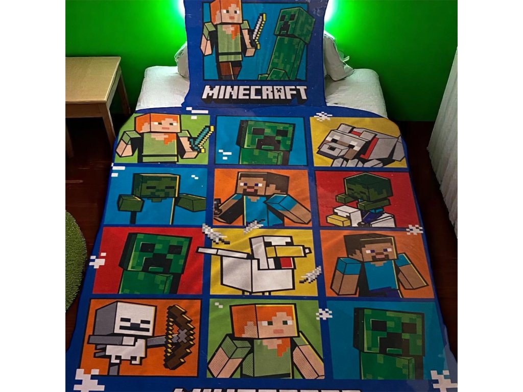 Přeneste své dítko do světa Minecraftu s naším originálním povlečením! Obsahuje oblíbené postavy jako Steve, Alex, Creeper, Zombie, Skeleton a další, vše v ikonickém pixelovém stylu. Ideální pro fanoušky, kteří chtějí mít své hrdiny stále u sebe.
