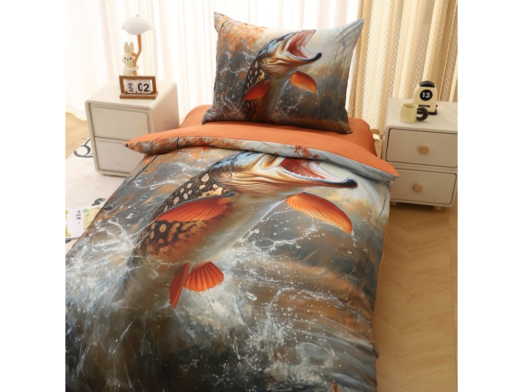 Představujeme Vám originální 3D povlečení ŠTIKA, které potěší každého zapáleného rybáře. Realistický motiv štiky v jejím přirozeném prostředí dodá Vaší ložnici osobitý styl a připomene Vám vzrušení z úspěšného úlovku.
