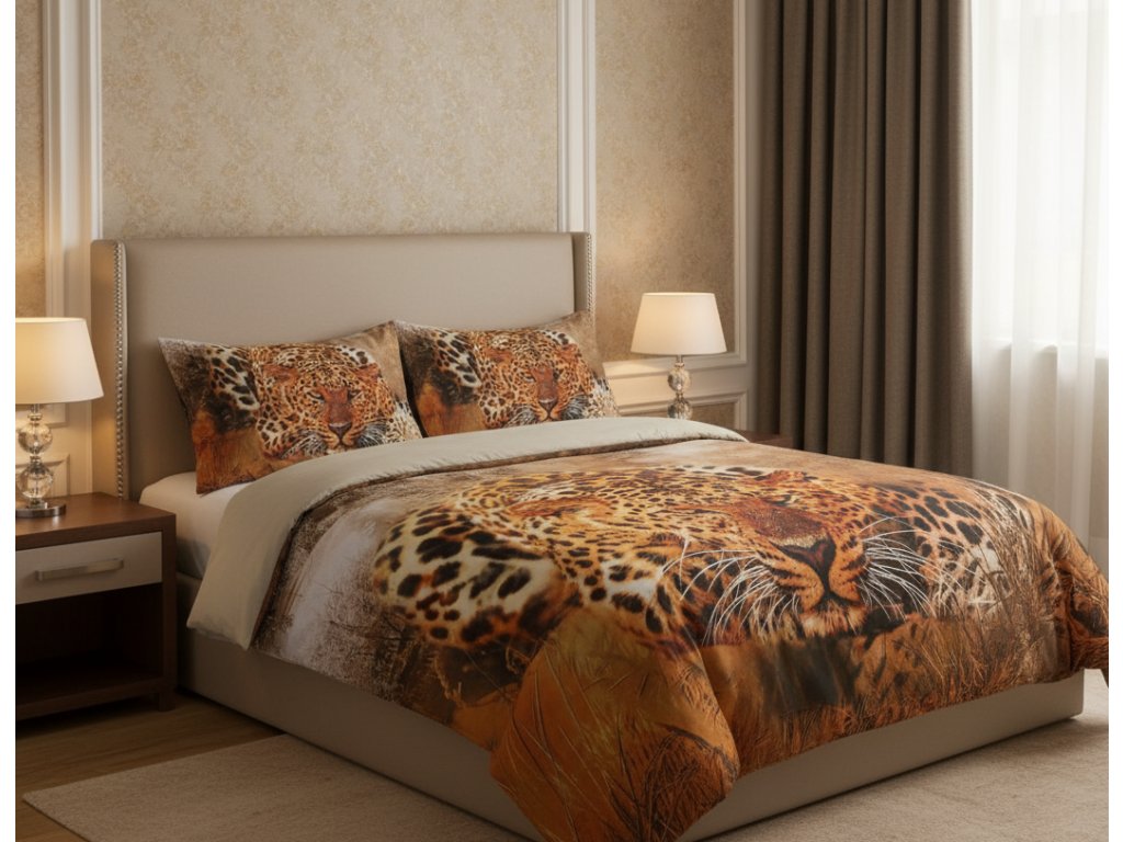 Vneste do své ložnice divokou eleganci a sílu přírody s Povlečením Cheetah. Výrazný 3D fototisk majestátního geparda v teplých, zemitých tónech promění vaši postel v poutavý designový prvek.
