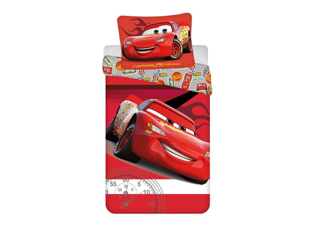 Připravte se na startovní čáru! Toto dynamické povlečení s motivem oblíbeného filmu Disney Cars (Auta) promění každou dětskou postel v závodní okruh. Legendární Blesk McQueen přinese do dětského pokoje energii a radost, díky čemuž bude večerní usínání pro všechny malé závodníky tou nejoblíbenější částí dne.