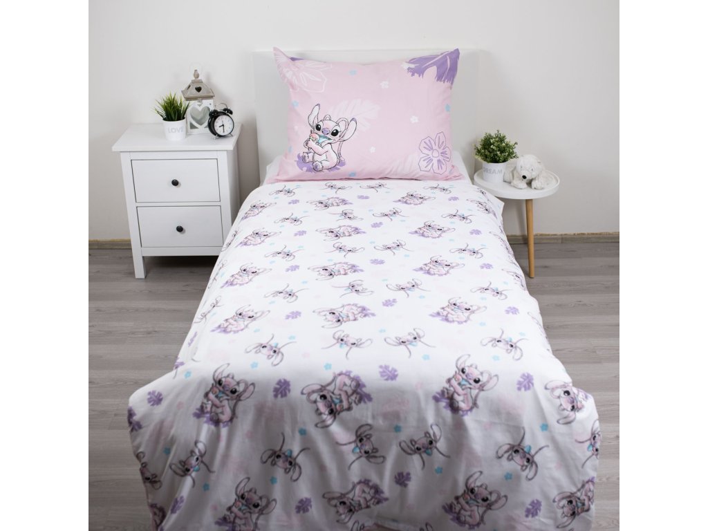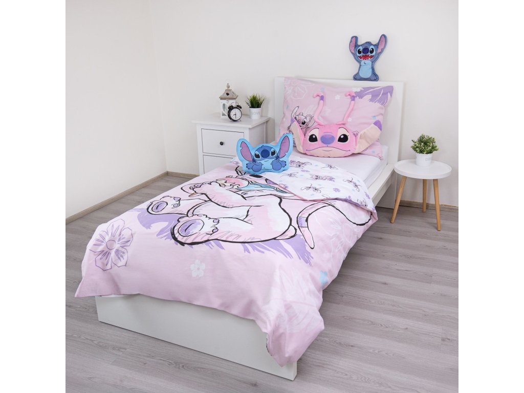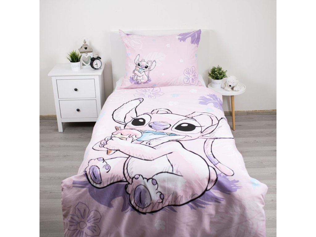 Dopřejte svým dětem (nebo sobě) kouzelný odpočinek v doprovodu Angel, roztomilé kamarádky legendárního Stitche! Toto povlečení v něžných růžových a fialových tónech s motivem Angel pochutnávající si na zmrzlině okamžitě rozzáří každý dětský pokoj a promění ho v útulné království plné pohody.