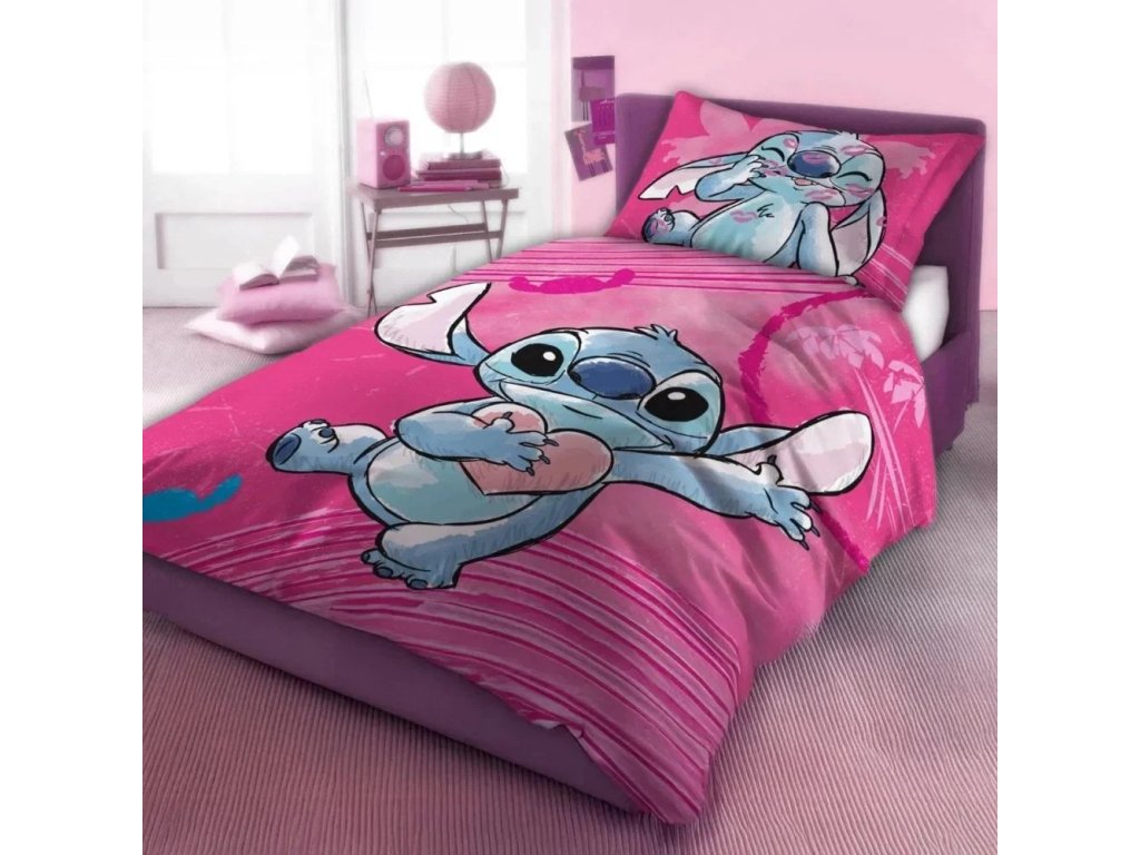 Potěšte všechny fanynky roztomilého mimozemšťana Stitche s touto bavlněnou ložní soupravou DISNEY STITCH Pink. Je ideální pro každého, kdo si oblíbil příběhy malé havajské holčičky Lilo a jejího kamaráda Stitche.