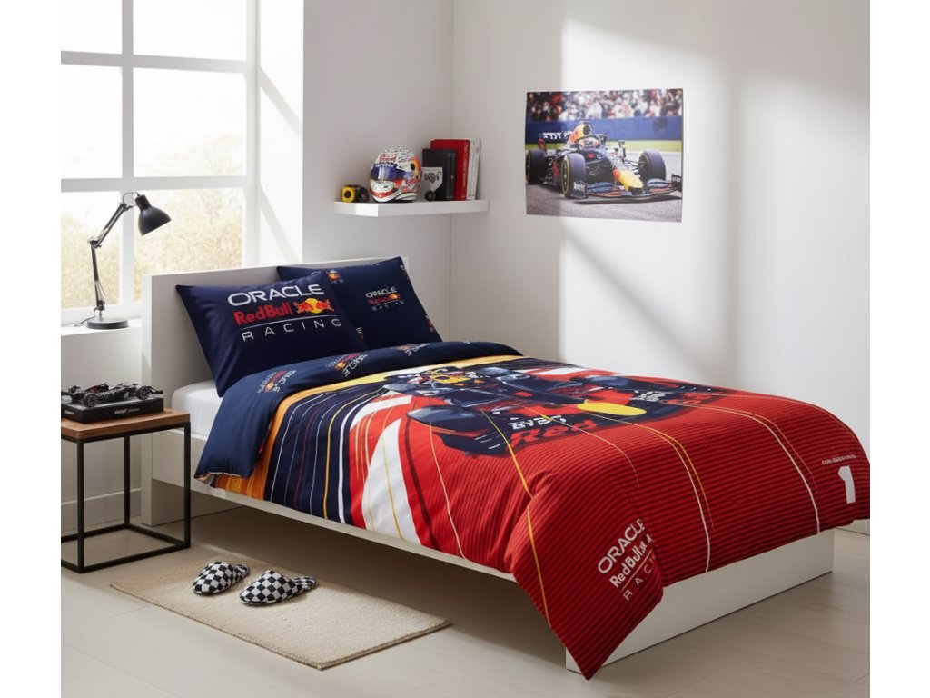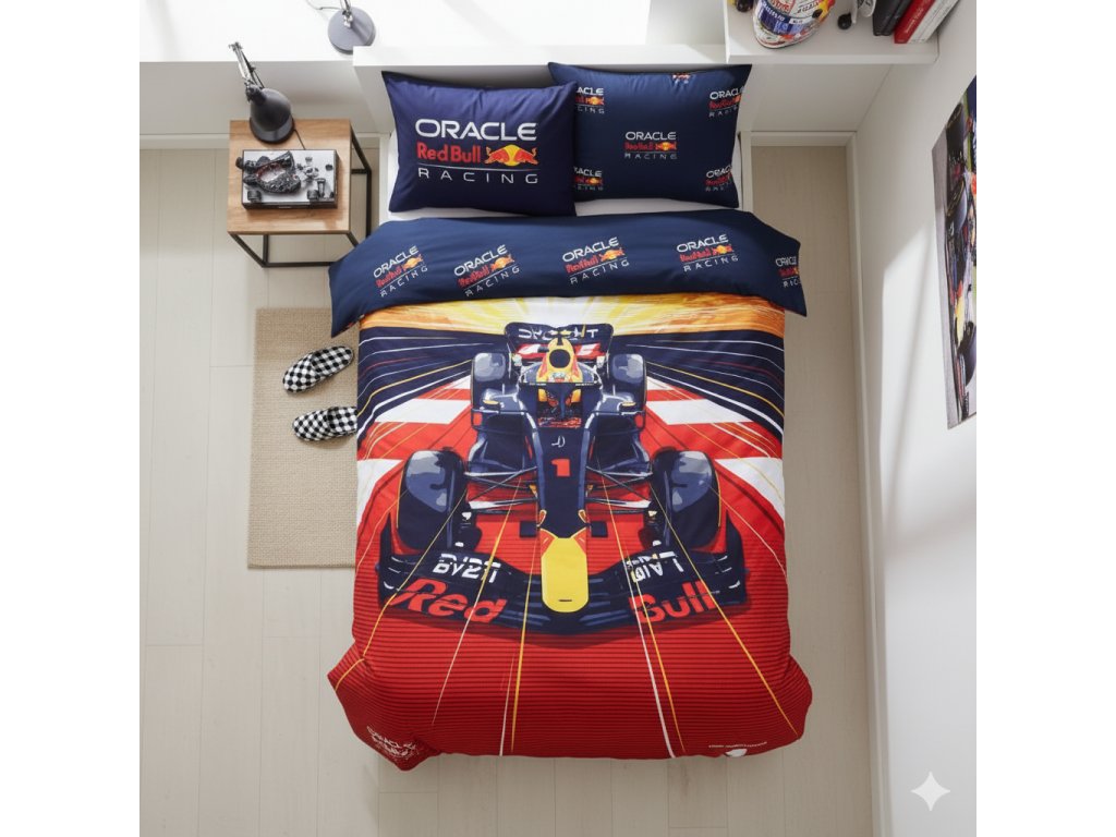 Vneste do své ložnice dynamiku a vášeň Formule 1! Tato stylová souprava ložního povlečení s motivem Oracle Red Bull Racing je ideálním dárkem pro všechny fanoušky F1.