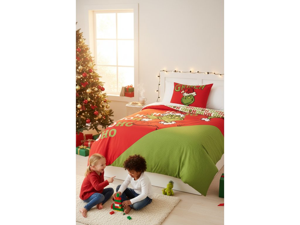 Rozzařte svou ložnici (nebo dětský pokoj) tímto zábavným bavlněným povlečením s motivem GRINCH! Ať už milujete Vánoce, nebo jste spíše jako Grinch před proměnou, toto povlečení vnese do vaší postele hravou a sváteční atmosféru.