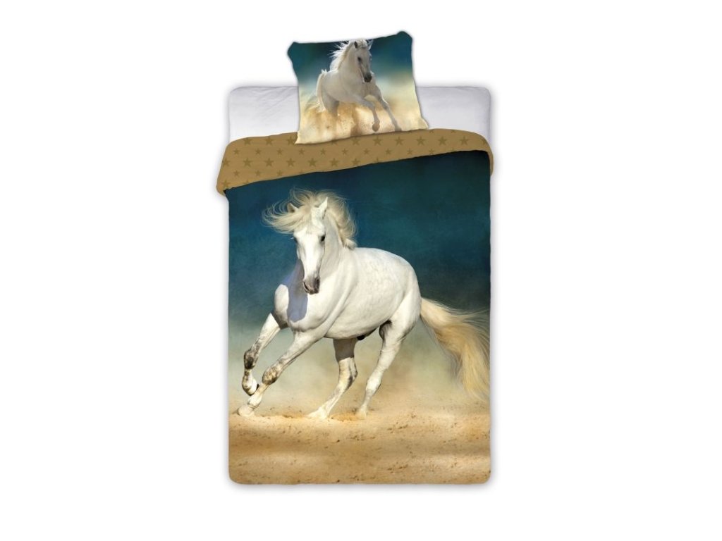 Dopřejte si spánek plný svobody s tímto nádherným bavlněným povlečením Bílý kůň. Toto povlečení je ideální pro velkou postel (jednolůžko) a potěší všechny milovníky koní a přírody.