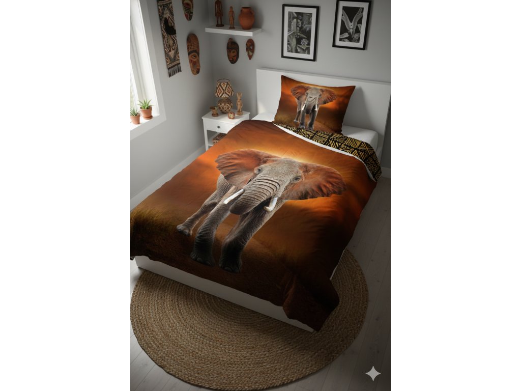 Tímto bavlněným povlečením potěšíte všechny milovníky afrických zvířat. Pokud chcete v klidu usínat a ještě k tomu s pocitem štěstí, není na co čekat, "sloník" totiž míří přímo k Vám.
