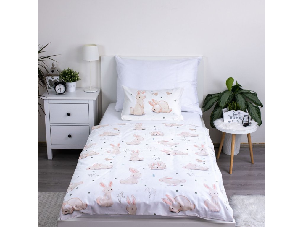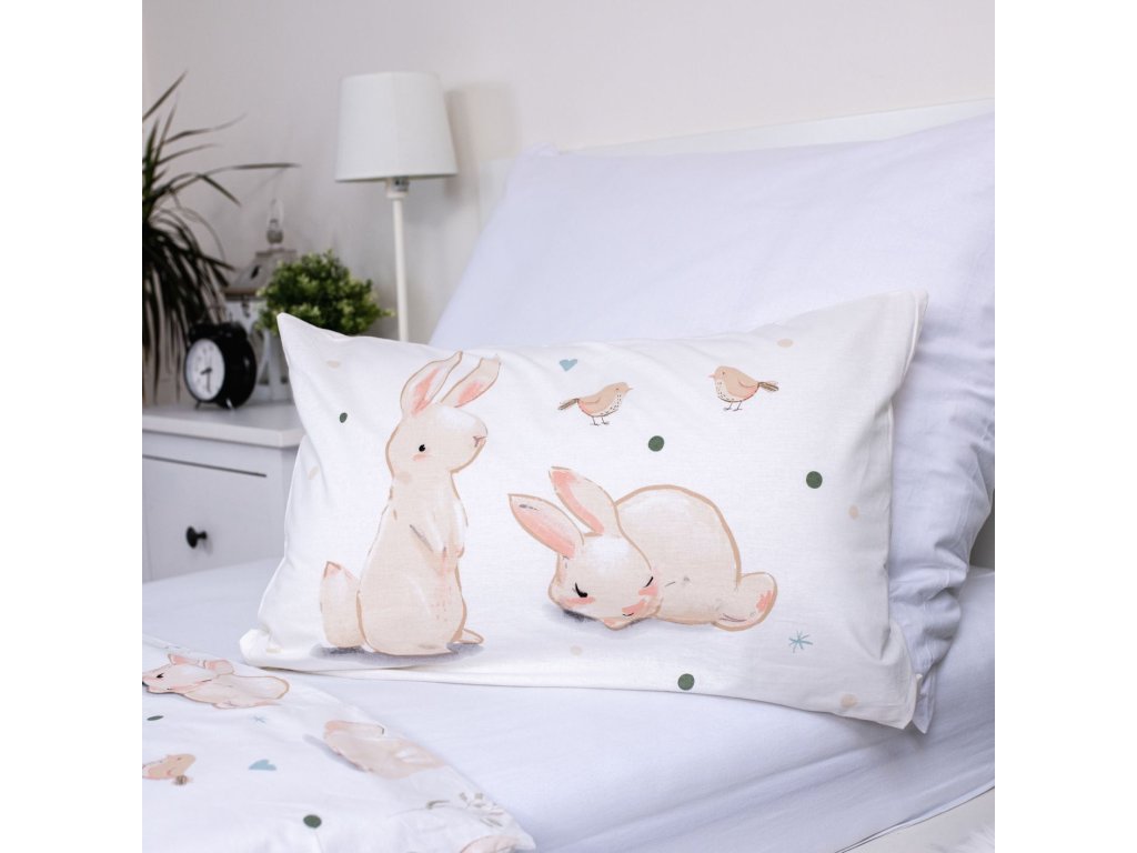 Vytvořte svému děťátku útulné a bezpečné místo pro odpočinek s tímto kouzelným povlečením. Něžný motiv s roztomilými králíčky a ptáčky v pastelových barvách vnese do každého dětského pokojíčku klidnou a harmonickou atmosféru.