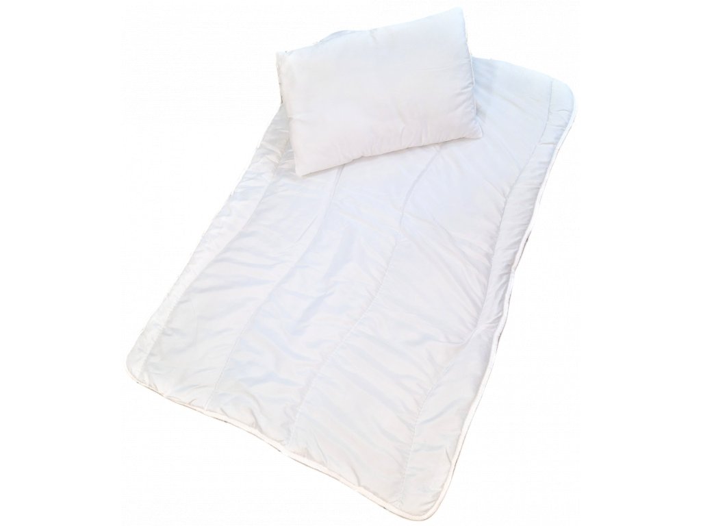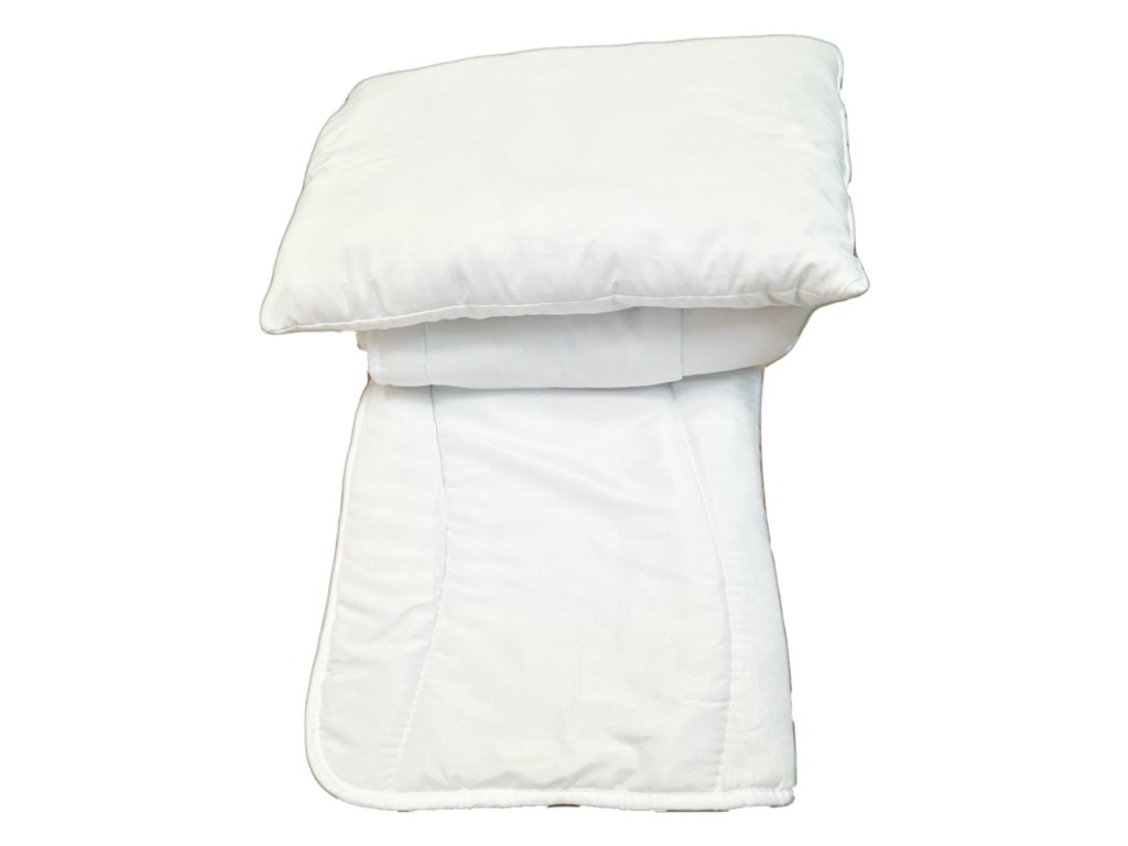 Sada obsahuje lehkou, prošívanou přikrývku a jemný, plochý polštář, který je ideální pro novorozence a malé děti. Je vyrobena z hypoalergenních materiálů – výplň ze silikonizovaného dutého vlákna a potah z měkkého mikrovlákna. Tyto materiály zajišťují prodyšnost, tepelný komfort a snadnou údržbu. Set je pratelný v pračce, rychle schne a drží tvar.
