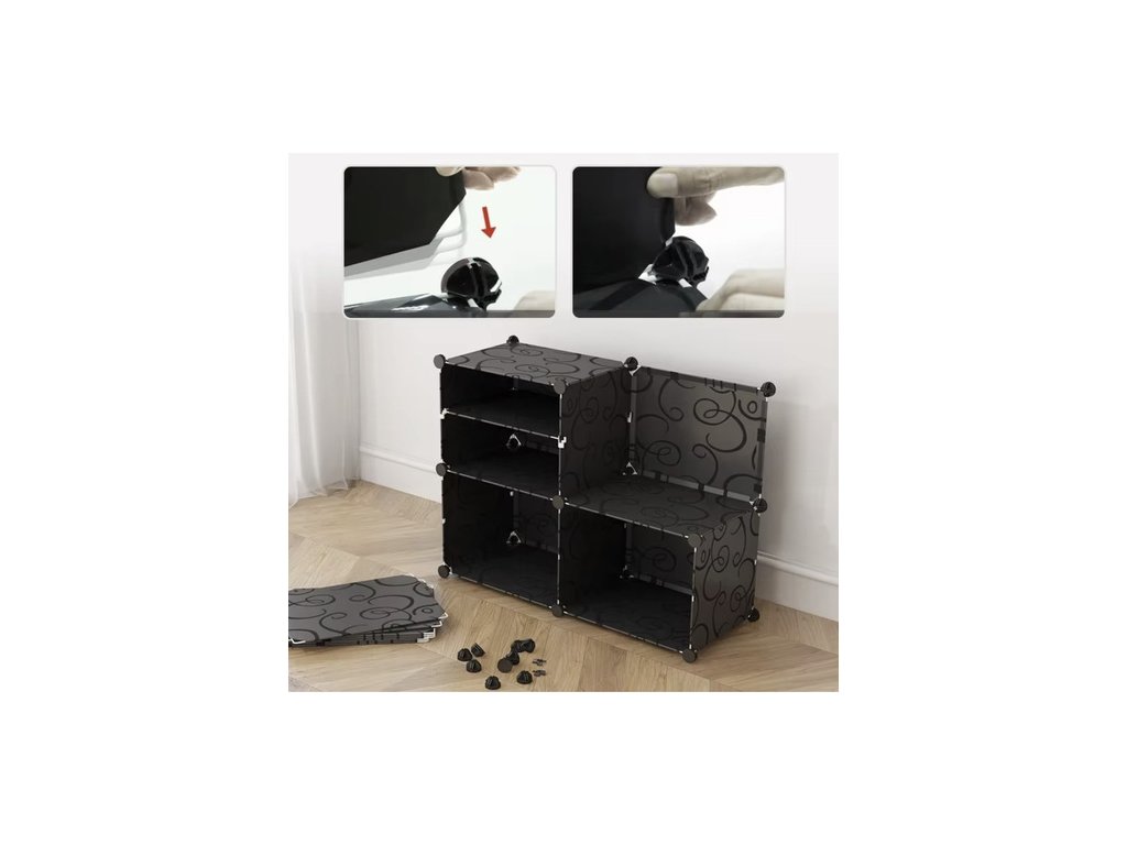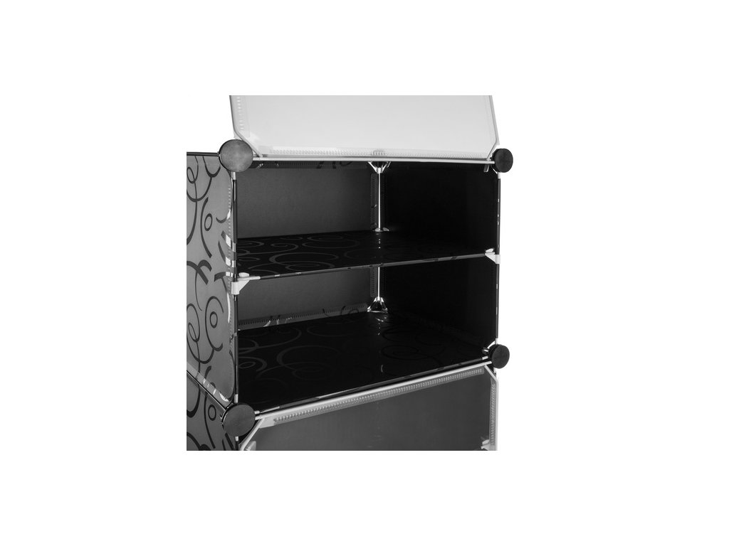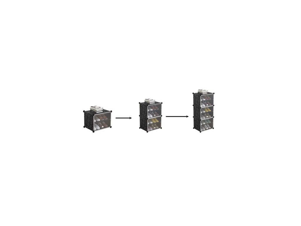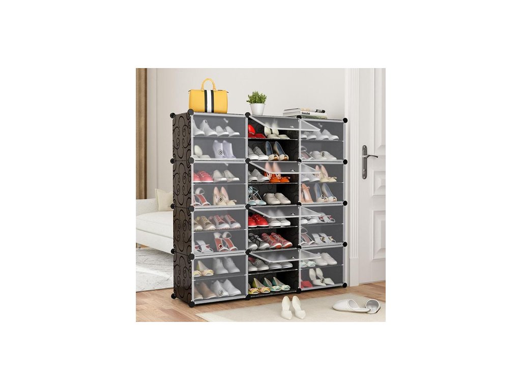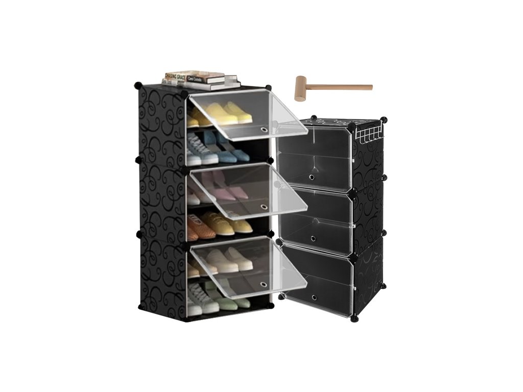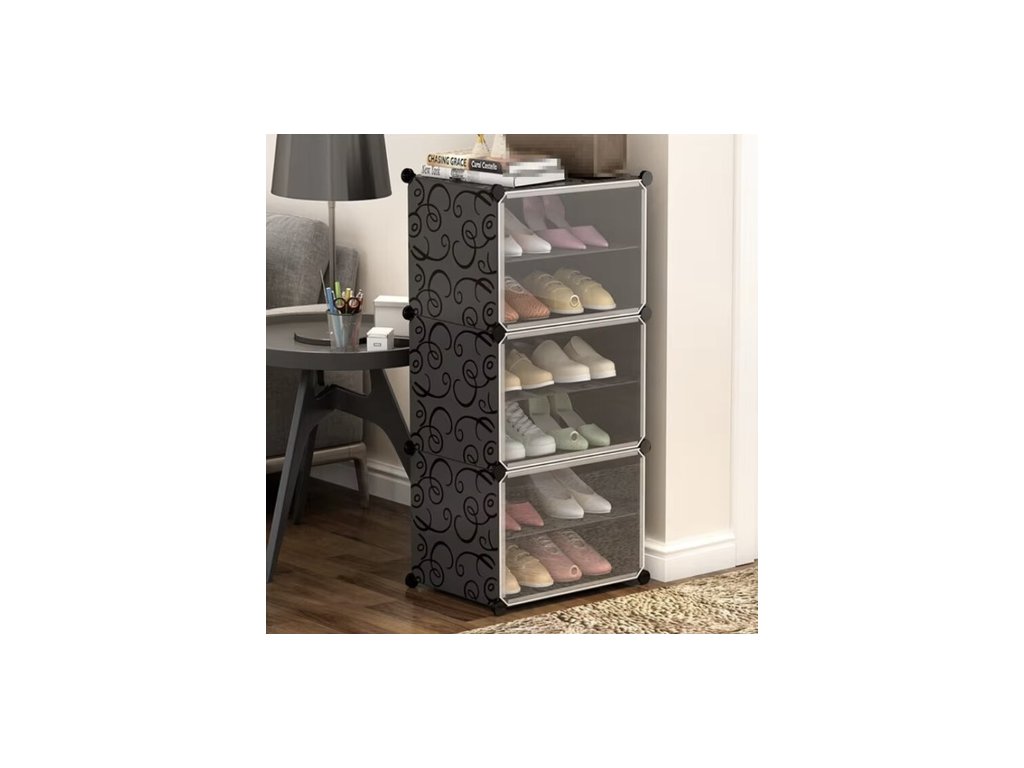Dvířka s přehledem: Otevírací dvířka chrání boty před prachem a zajišťují estetický vzhled. Průhledné provedení umožňuje snadnou kontrolu obsahu a rychlé nalezení hledaného páru bez nutnosti otevírat každý segment.