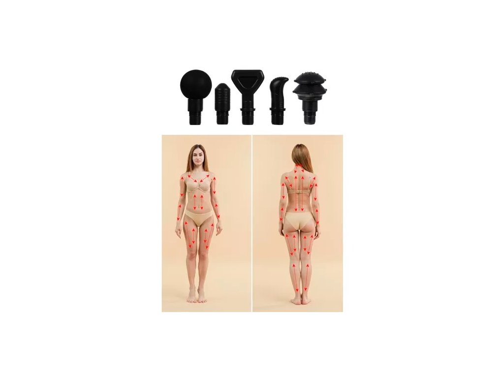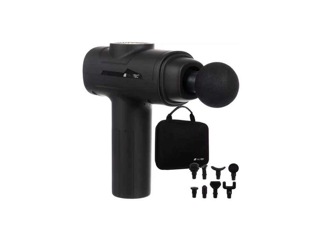 Balení obsahuje: Masážní pistoli, 8 nástavců, USB nabíjecí kabel, sáček na nástavce a transportní kufřík.