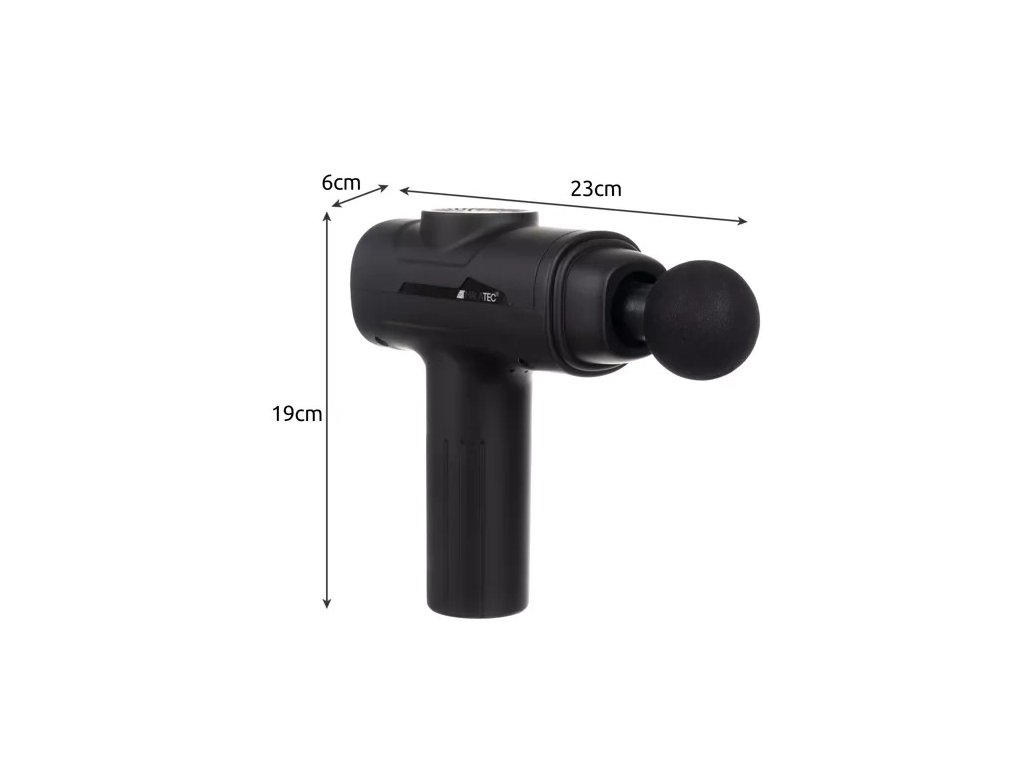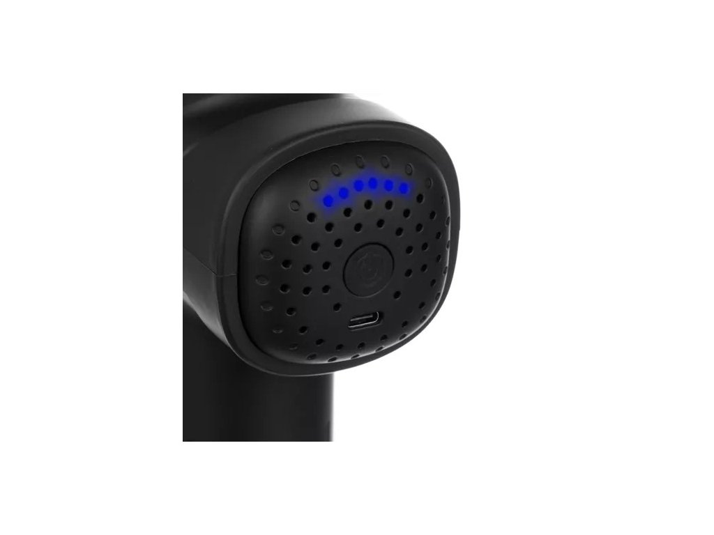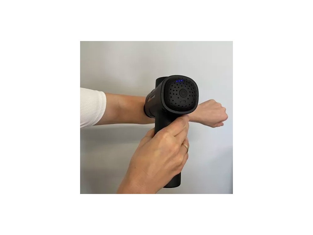 Ergonomie: Rukojeť je opatřena protiskluzovou strukturou, která zajišťuje, že pistole během masáže pevně drží v ruce.