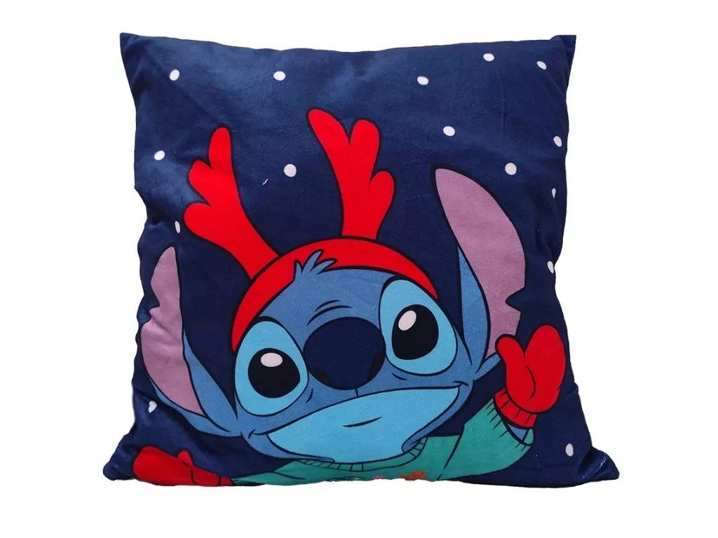 Povlak se pyšní vánočním designem s motivem Stitche, který se usmívá a vesele mává. Celý design je laděn do tmavě modré barvy se sněhovými vločkami a na hlavě má Stitch roztomilé parohy. S rozměry 40 x 40 cm je tento povlak ideální pro standardní dekorační polštářky.
