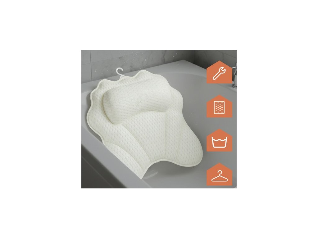 Ergonomický tvar: Polštář se přirozeně přizpůsobí křivkám vašeho těla, což zajišťuje maximální komfort a kompletní uvolnění svalů během koupele.
