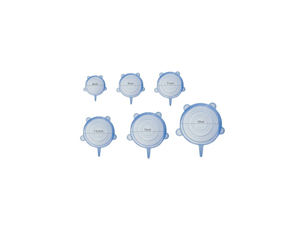 Víčka jsou vyrobena z pružného, bezzápachového silikonu, který se skvěle přizpůsobí různým tvarům a velikostem nádob. Materiál je odolný vůči vysokým teplotám (až 200 °C), takže s nimi můžete bez obav přikrýt vařící vodu, ohřívat jídlo v mikrovlnné troubě nebo je použít v mrazáku.