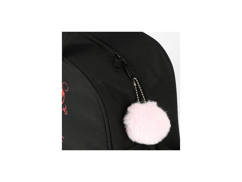 Designový set: Černou barvu doplňuje moderní růžový potisk a součástí balení je také stylový růžový přívěsek, který dodává tašce unikátní vzhled.