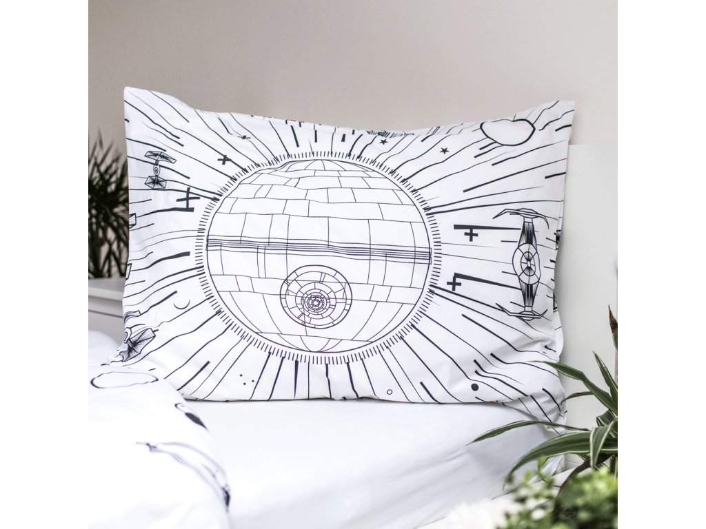 Zářivý efekt: Pro dosažení efektu, kdy povlečení ve tmě září, stačí ho vystavit na krátkou dobu dennímu světlu. Tímto způsobem se "nabije" a po zhasnutí světel vytváří magickou záři motivů Hvězdy smrti, lodi Millennium Falcon a vesmírných stíhaček.
