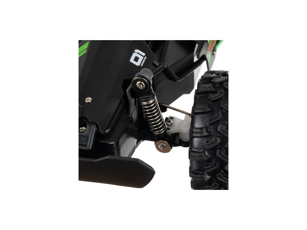 SUPER RS AUTO si bez problémů poradí s dynamickou jízdou i kolizemi. Díky pevné konstrukci, odolným tlumičům a zesíleným prvkům je navrženo tak, aby bylo odolné i v náročném terénu. S velkými gumovými koly a plným odpružením se efektivně pohybuje po trávě, štěrku, asfaltu, a dokonce i lehkém písku, což zajišťuje hladkou a stabilní jízdu na nerovných površích.