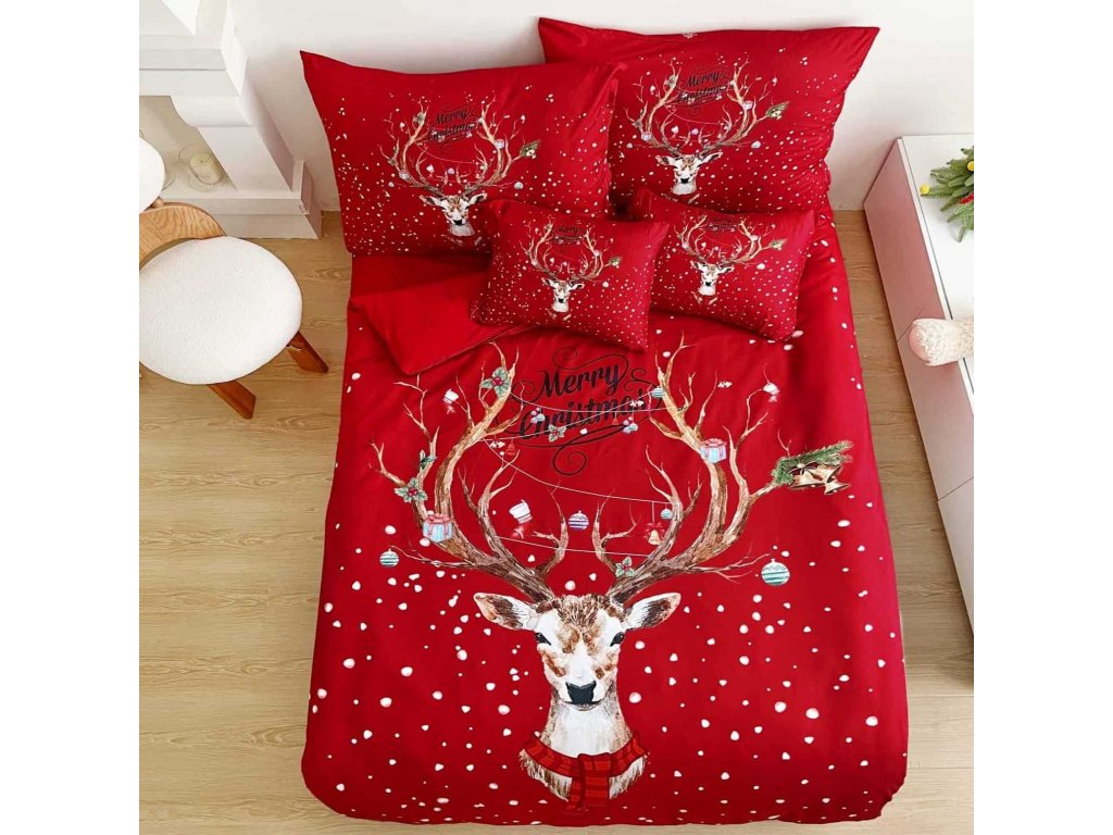 Krásné povlečení s vánoční tématikou. Buďte ,,IN" a vylaďte si ložnici dle aktuálního ročního období. Oboustranné provedení s vánočním 3D obrázkem jelena/jednobarevné, červené, vyberte si styl, dle své aktuální nálady. 3dílná sada povlečení na přikrývku 140x200cm, povlak na velký polštář 70x90cm a povlak na malý polštářek 50x40cm. Materiál mikrovlákno. Zapínání na knoflíky. Nepoužívejte prací prostředky s bělícími účinky. Dodržujte pokyny k údržbě dané výrobcem na štítku či obalu zboží.