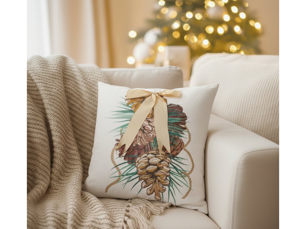 Vytvořte si doma skutečnou sváteční atmosféru s tímto okouzlujícím Vánočním Dekorativním Povlakem na Polštář! Jeho design je zdoben elegantní ozdobou z borové šišky převázané mašlí, která do vašeho interiéru přinese kouzlo a hřejivou náladu zimy.