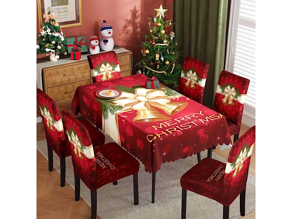 Vánoční sada - ubrus a povlaky na židle – dokonalá sváteční dekorace pro váš domov!