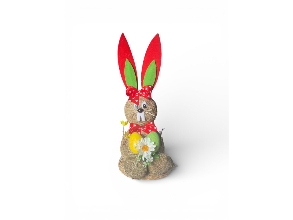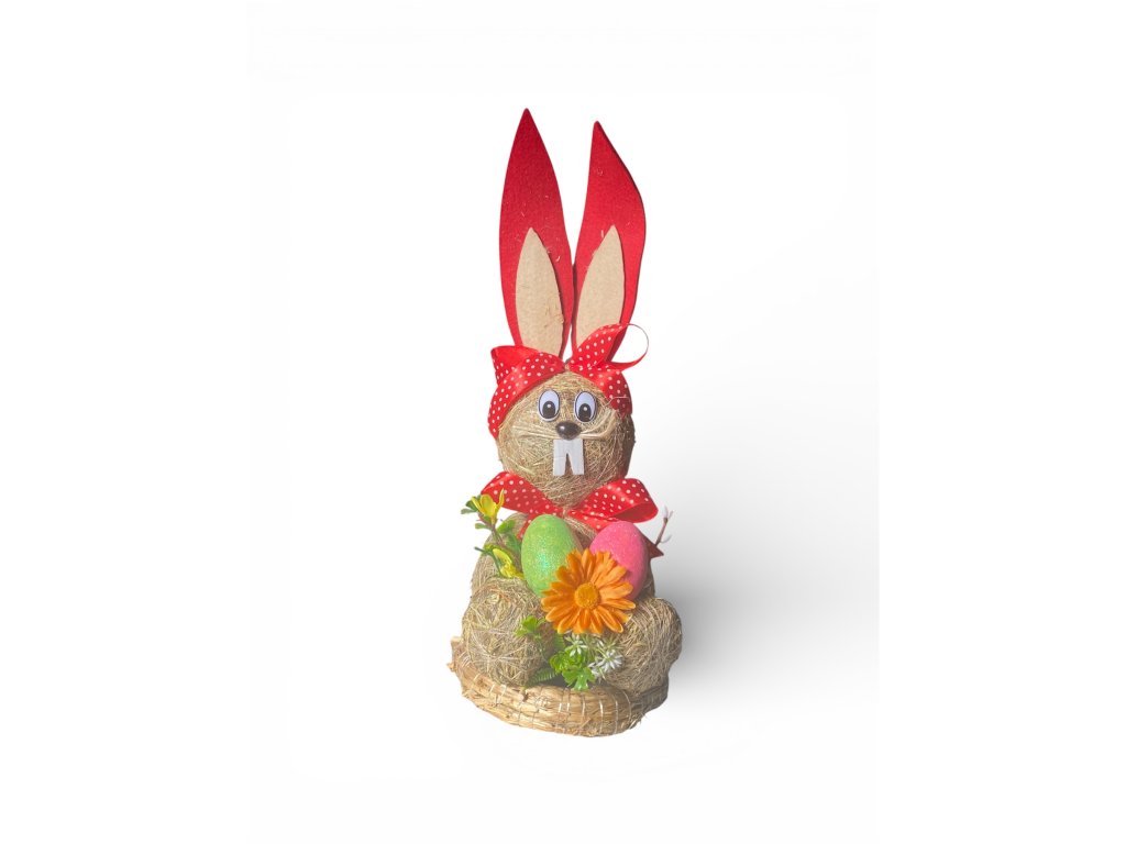 Tento nádherný velikonoční zajíček je vyrobený ze slámy, což mu dodává autentický přírodní vzhled a zaručuje, že se stane středobodem vaší jarní výzdoby. Každý kousek je bohatě zdoben veselými velikonočními prvky, jako jsou barevná vajíčka, květy a hravé mašle, které do vašeho domova vnesou pravou sváteční atmosféru.