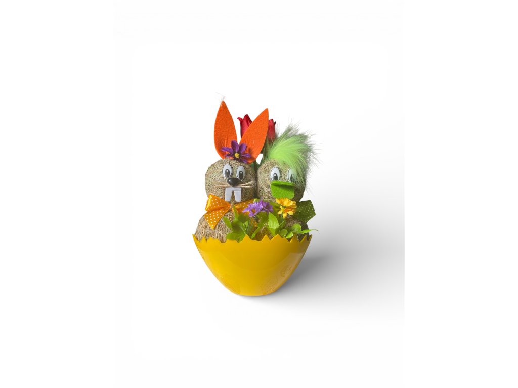 Tato kouzelná dekorace představuje nerozlučnou dvojici zajíčků, kteří spolu tvoří harmonický a hravý celek. Celá kompozice je vyrobena z přírodní slámy, což jí dodává tradiční rustikální vzhled, který vdechne vašemu domovu tu pravou sváteční atmosféru.